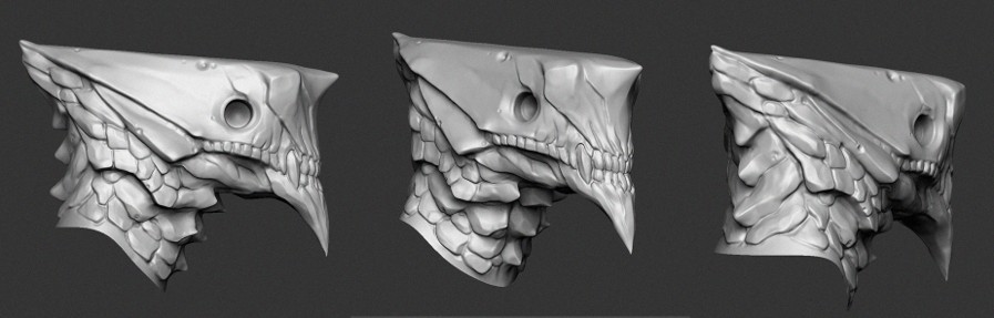 Poté, co je hotovo, se do díla pustí 3D sochařský program, jež na povrchu virtuální figury vygeneruje jemné detaily (ty jsou pak ve hře simulovány normálovou texturou).