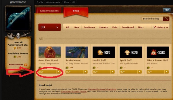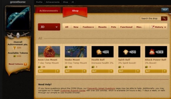 Pomocí token shopu si můžete na internetových stránkách koupit určité věci do hry. Za ně se neplatí penězi, ani herní měnou, ale body, které získáte za ocenění získané jako odměnu za hraní Jade Dynasty.