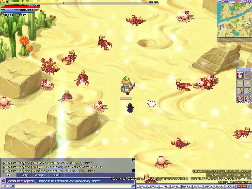2D fantasy MMORPG s líbivou anime grafikou. Je zde celkem 8 class a 12 statů + pár zajímavých unikátností typu karetní minihra nebo drilling itemů (tj. občas vykopete vrtačkou něco užitečného). Level cap je zde také poměrně vysoký (400). Potěšit by vás mohl i neobvyklý vývoj postavy (zvyšování schopností spadajících pod Power, Magic, Sense a Charm).